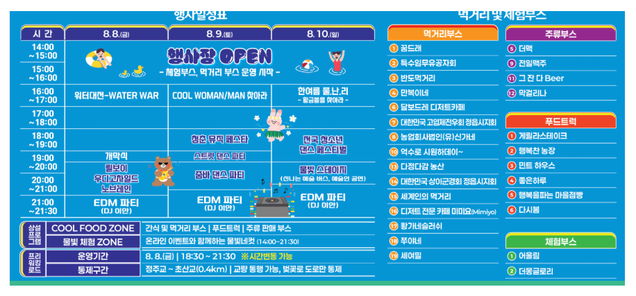 8월 8일부터 10일까지 정읍천에서 열린 이 축제는 ‘물, 빛, 젊음’을 테마로, 음악과 체험이 어우러진 MZ세대 맞춤형 여름 페스티벌이었어요. 현장에서 직접 느낀 분위기와 경험을 바탕으로, 축제의 매력을 정리해 보겠습니다.